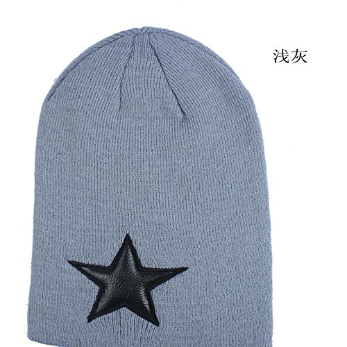 GPPZ Cappellino a Righe a Righe a Righe Invernali con Stella a Cinque Punte Cappello Caldo a Maglia a Maglia Invernale Cappellino da Sci Giornaliero per Esterni, Grigio Chiaro