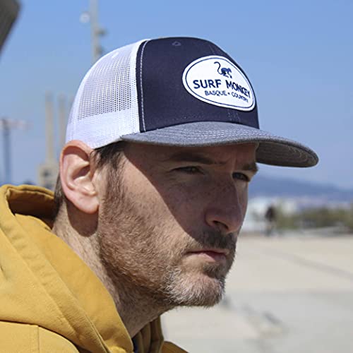 Cappellino Trucker da Uomo - Surf Monkey Etichetta a Toppa in Tessuto - Tesa Curva - Regolatore Stile retrò Snapback - Visiera Semi-curvata -Surf Monkey®- spedizione Gratuita (Blu Navy)
