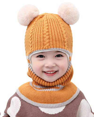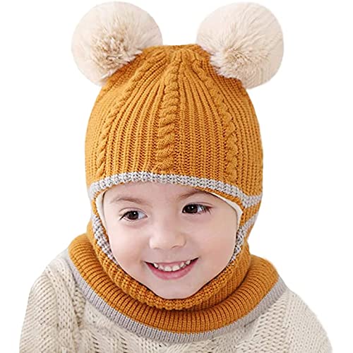 JFAN 2 in 1 Cappello Bambino Invernale Sciarpa e Cappello Bambina in Maglia Cappuccio Foderato in Pile Lana Passamontagna Ragazzo e Ragazza Giallo