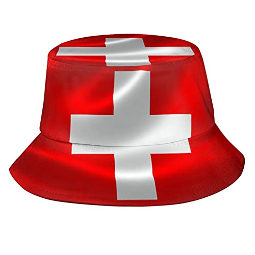 Cappello da Sole Bandiera Svizzera Cappello da Viaggio Unisex Wide Brim Sun Hat alla Moda Bucket Cappelli per Viaggi, Escursionismo, Spiaggia All'Aperto
