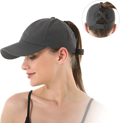 Cappello da Baseball da Donna a Coda di Cavallo,Regolabile Traspirante Asciugatura Rapida A Rete ponycap (Grigio Scuro)