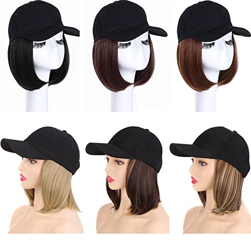 Cappello con i capelli Parrucche for capelli di berretto da baseball sintetico parrucche a corto dritte marrone non collegare naturalmente parrucche regolabili for le donne Parrucchiere attaccato parr