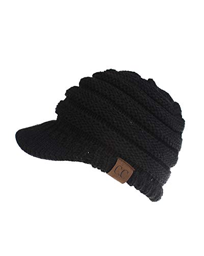 Cappello con Buco per Coda di Cavallo Berretto Beanie Caldo e Termico Invernale di Lana per Le Donne - Berretto da Baseball con Visiera a Maglia Nero OneSize