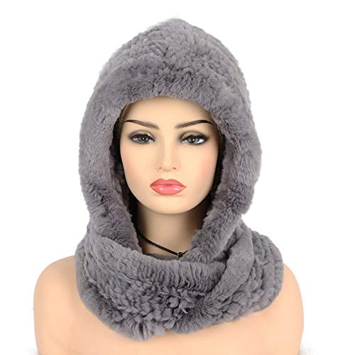 Cappello di Coniglio Lavorato A Maglia da Donna Sciarpa con Cappuccio Cappelli Invernali per Berretto da Donna Cappello Naturale Caldo con Sciarpe al Collo, Grigio, Taglia Unica