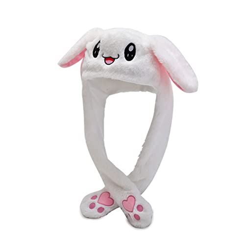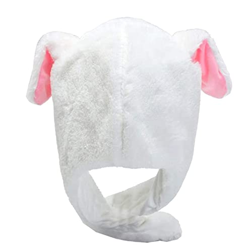 Cappello da Coniglio Orecchio Dell'orecchio Coniglio Cappello con Orecchie in Movimento Giocattolo del Peluche Cappello Simpatico Animale di Peluche Divertente Coniglietto Peluche per Ragazze (Bianca)
