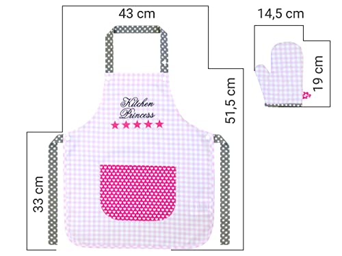 Cappello da cuoco in taglia unica o grembiule da cucina & guanto da cucina disponibile in 2 dimensioni - per ragazzi e ragazze in 4 varianti - amorevole Design e lavorazione di alta qualità, 100 % cotone, Kitchen Princess, Küchenschürze & Topfhandschuh 3-6 Jahre