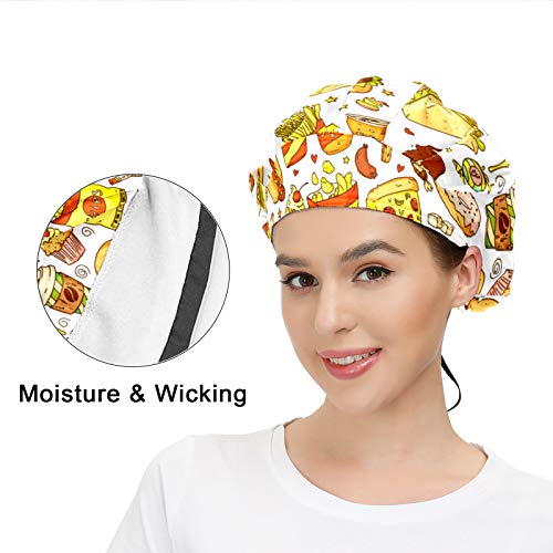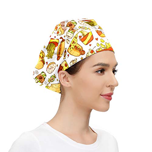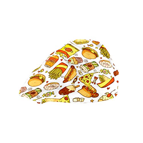 Cappello da donna per capelli lunghi con fascia elastica regolabile da lavoro per uomo Lavoro testa sciarpa 3D stampati cappelli Cartoon Pizza Hamburger Hot Dog caffè