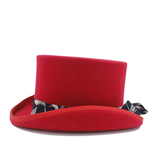 Cappello donna in lana fedora Cappello steampunk fai da te con cappello in panno blu modello Mad Hatter per donna, GJIN-Hats, ( Color: Red, Size: 61CN )