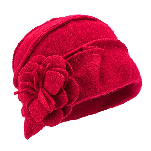 Cappello da donna retro, anni 20, in stile Gatsby, 100% lana, alla pescatora, invernale, A376 Red Taglia unica