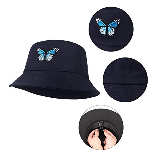EOZY - Cappello da sole da donna con ricamo a farfalla, vintage, per escursionismo, in cotone, pieghevole, anti-UV, per viaggi estivi, casual, Marina, Taglia unica