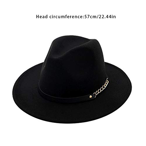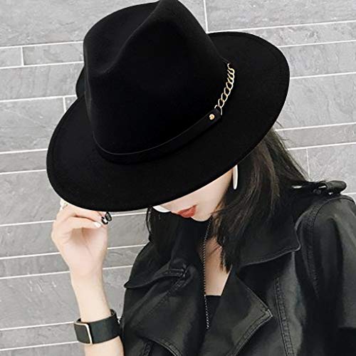 Cappello di Fedora Fedora feltro larga da donna, stile vintage e semplici stili autunno tappo invernale facile da abbinare con cappotti e abiti, nero
