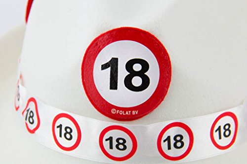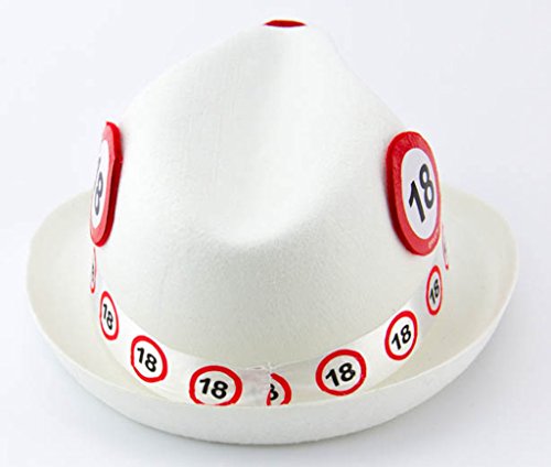 Cappello di feltro bianco con segnale stradale 18 anni.