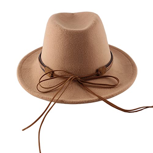 H.S.G.K Cappello in feltro a tesa larga Fedora Cappello invernale da uomo Berretto caldo Marrone