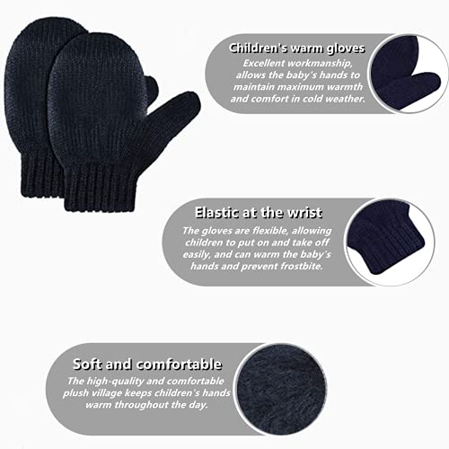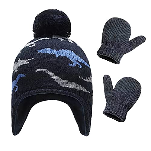 Set di Cappello Guanti Invernali per Bambini a Maglia, Berretto a Maglia Bambini Cappello Foderato in Pile Cappello da Neve Cappello da Sci con Paraorecchie Cappello Guanti per Bambini di 1-5 Anni