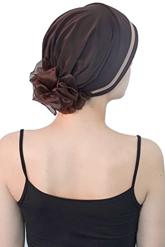 Cappello chic imbottito piegato con fiore chiffon sul retro (Cacao/Beige)