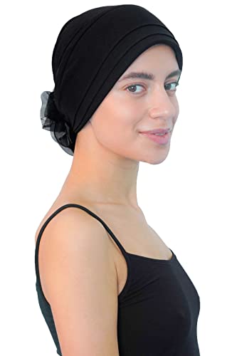 Cappello chic imbottito piegato con fiore chiffon sul retro (Nero)