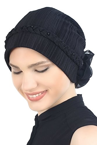 TURBANTE QUOTIDIANO PER LA PERDITA DEI CAPELLI: Progettato per offrire una copertura totale della testa e restituire fiducia a una donna nonostante la perdita dei capelli causata da cancro, chemioterapia o alopecia, questo cappello per pazienti oncologici è arricchito con un elegante fiore di chiffon fatto a mano sul retro per un comfort assoluto con un appeal estremamente femminile