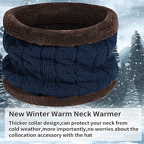 Cappello Uomo Invernali Beanie in Maglia con Sciarpa, Cappello Sciarpa Uomo, 2 pezzi Cappello da Sci all'aperto e Set Sciarpa Teschio Lavorato a Maglia con Fodera in Pile (Blu)