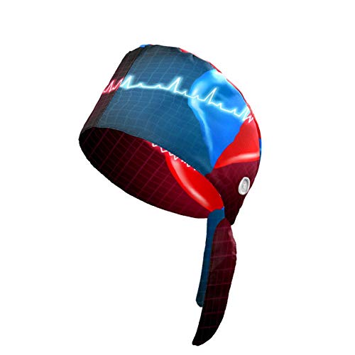 Cappello da lavoro da donna con bottone e fascia antisudore riutilizzabile cappelli 3D stampati copricapo cappello da lavoro regolabile cravatta posteriore cappello per adulti battiti cardiogramma ECG