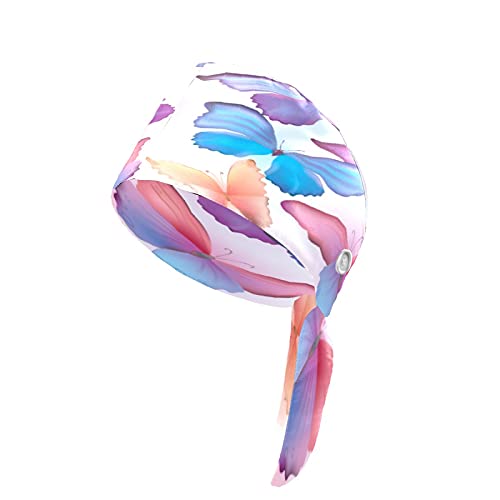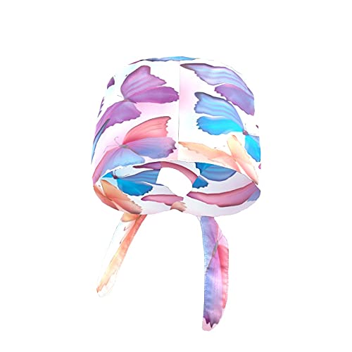 Cappello da lavoro da donna con bottone fascia antisudore riutilizzabile cappelli regolabile Tie Back Hat Headwrap per adulti Bella farfalla blu