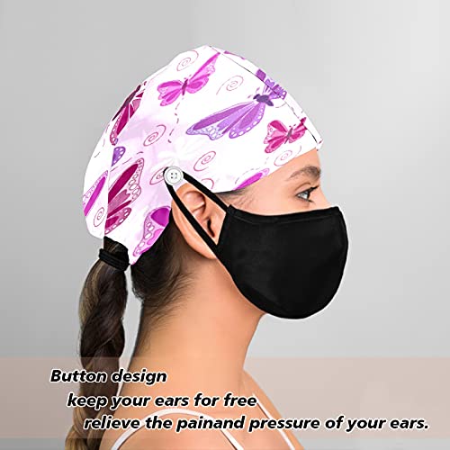 Cappello da lavoro da donna con bottone fascia antisudore riutilizzabile cappelli cravatta regolabile cappello per adulti rosa viola farfalla