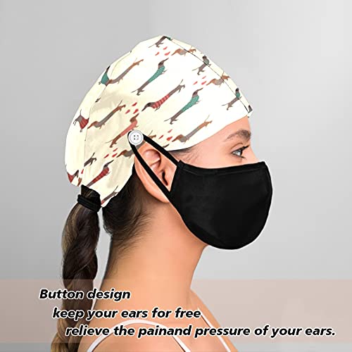Fascia per capelli con pulsante di aggiornamento: il cappello bouffant è progettato con 2 bottoni sul lato sinistro e destro, che consente di mettere le cinghie della maschera intorno ai pulsanti anziché alle orecchie, alleviare il dolore e la pressione delle orecchie causati dall'indossare la maschera per un lungo periodo di tempo.