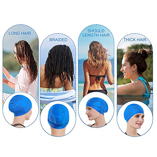 Cappello da Nuoto, Cuffie da Nuoto in Piscina, Cuffia da Nuoto Elastica, Cuffie da Piscina Nuoto Antiscivolo Durevoli Cuffie da Bagno Nuoto per Donne Uomini, Capelli Corti e Lunghi, 2 Pezzi, Blu