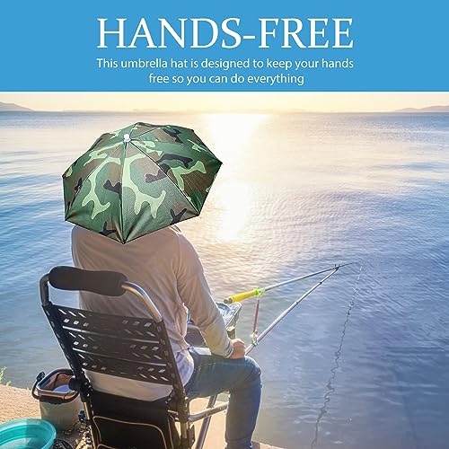 Cappello Ombrello Per Pioggia Da 65 cm Con Protezione Solare Antivento Con Montaggio Sulla Testa Ombrello Pieghevole Cappello Ombrello Regolabile Diametro Per Cappello (mimetico)