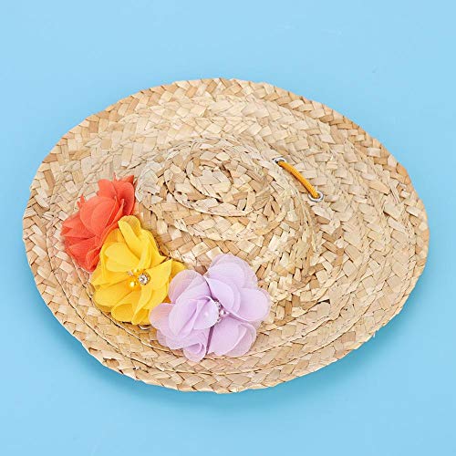 【Moda e bellezza】 Adottato cappello da compagnia artigianale in paglia con splendidi decori di fiori, rende il tuo cane più bello e interessante.