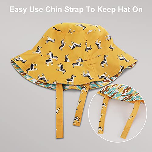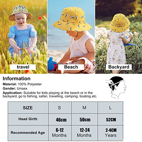 Cappello da Pescatore per Bambino Protezione Solare Cappello Estivo a Tesa Larga per Neonato UPF50 Cappellino Biadesivo con Stampa Animalier per Neonati Bambini Ragazze 2-5 Anni
