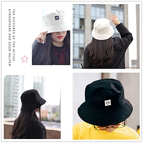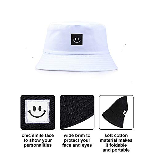 Design alla moda: i cappelli a secchiello sono caratterizzati da colore bianco o nero e tesa larga, stampati con un simpatico motivo a faccia sorridente, sembrano classici ed eleganti, mostrano la tua personalità semplice e discreta.