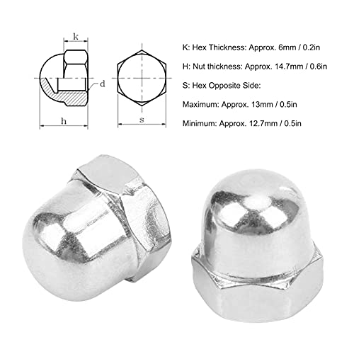 Dado a cappello, 100 pezzi di dado a cappello esagonale a ghianda in acciaio inossidabile Kit di set di cupole Coperchio di protezione a vite M8 Argento