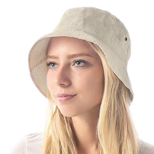 Cappello a secchiello unisex 100% cotone e denim UPF 50 ripiegabile estate viaggio spiaggia cappello da sole, Stucco, S/M