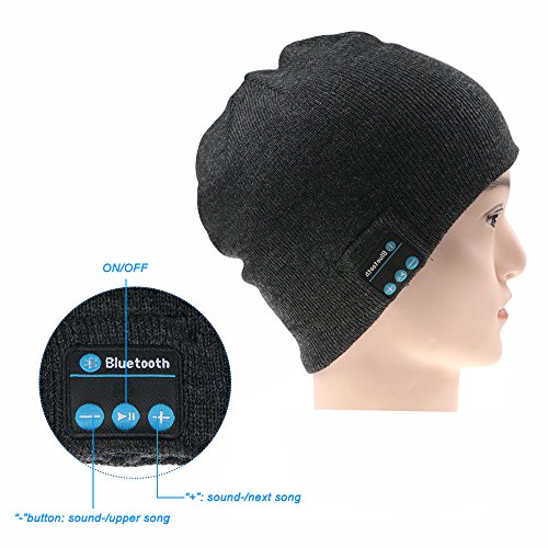 Cappello senza fili Bluetooth, TPfocus Music Beanie Hat con cuffia stereo Auricolare Mic per Fitness Outdoor Sport Sci Pattinaggio in esecuzione Passeggiata, Regali, Grigio