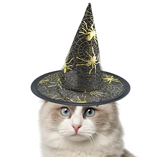 Dabb Cappello da Strega di Halloween Gatto, Cappello da Strega per Animali Domestici per Cani di Piccola Taglia Cosplay, Cappello da Strega con Ornamenti di Zucca per la Festa di Halloween, Accessori