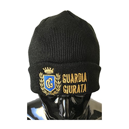 Cappello Tondo in Maglia Nero Guardia GIURATA con Alloro Celeste