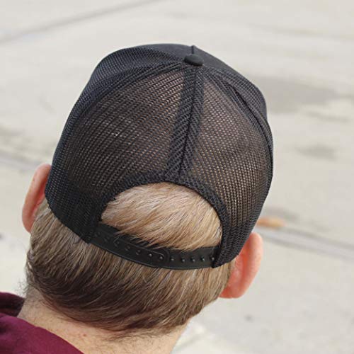 Cappello trucker - Berretto da Uomo - Design a 5 pannelli - Taglia unica - Toppa cucita frontale - Chiusura a scatto regolabile - Cappuccio strutturato con profilo medio (Nero)