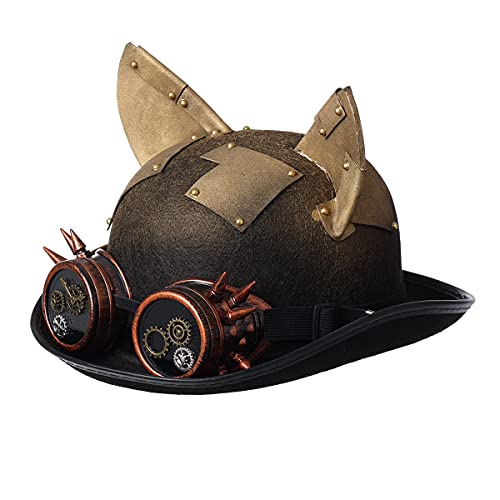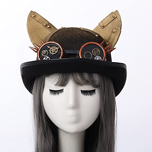 Cappelli Steampunk per uomo donna nero, cappelli superiori per donne, cappello gotico, cappello steampunk con occhiali, cappelli da orecchio gatto