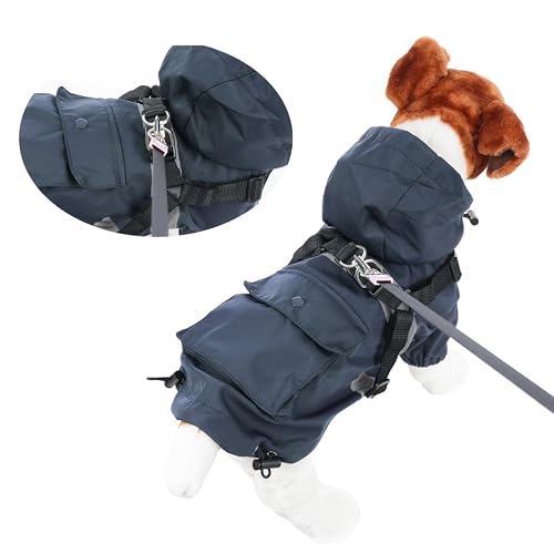 Cappotti con Cappuccio per Cani di Piccola e Media, Giacca per Cani Calda e Morbido, Giacca Cani Antivento con Anello Per Imbracatura - Blu, XL