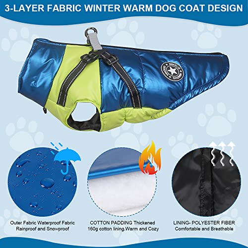 Cappotti per Cani Invernali, Cappotto Cane Taglia Piccola Taglia Media Grande, Cappotti Cani Impermeabile Antivento, Vestiti Giacca Cani Cappotti per Cani Invernali con Pettorina Incorporata, 2XL Blu