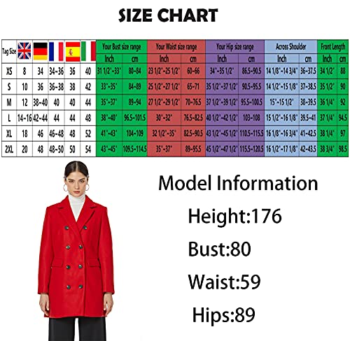 MISS MOLY Cappottino Donna Cappotti Cappotto Doppiopetto Misto Lana Parka Classica Media Lunghezza Giubbotto Rosso XS
