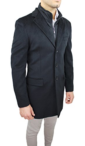 Cappotto Elegante Uomo Nero Sartoriale Slim Fit Giaccone Soprabito Invernale con Gilet Interno (XL, Nero)