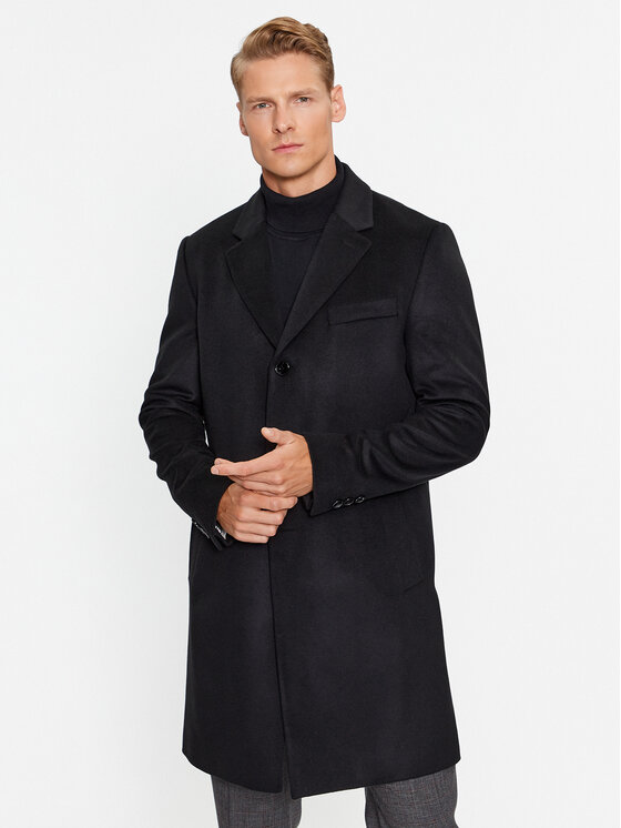 Boss Cappotto di lana H-Hyde-234 50502327 Nero Slim Fit