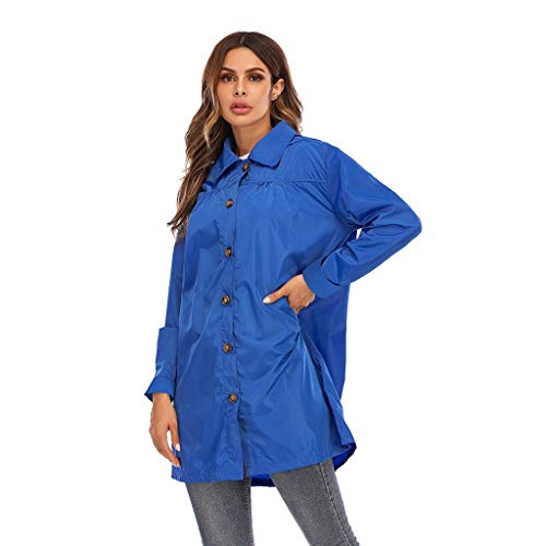 ZBYY - Cappotto impermeabile impermeabile da donna, pieghevole, leggero a vento, con cappuccio, giacca da pioggia - blu - M