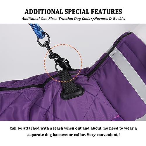 Vivi Bear Cappotto Invernale per Cani, Giacca Impermeabile e Calda per Cani Antivento per Cani Grande, Cappotto Invernale per Cani con Imbracatura con Anello a D e Design Riflettente, Viola 6XL