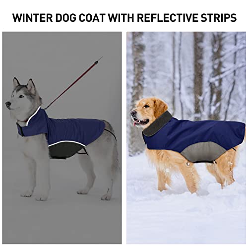 Bwiv cappotto invernale per cani grandi giubbotto impermeabile foderato in pile con apertura per guinzaglio (5XL Blu scuro)