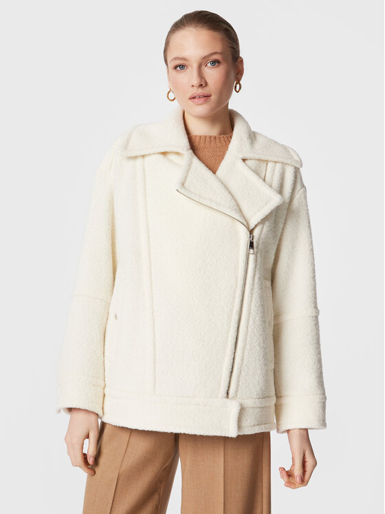 Boss Cappotto in shearling Jafea 50482688 Écru Relaxed Fit