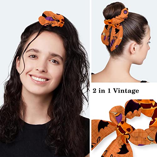 Cappucci Bouffant Scrub regolabili Cappello da lavoro Copertura per capelli con berretto da infermiera chirurgica con sacchetto a coda di cavallo,Plaid arancione pipistrello zucca di Halloween