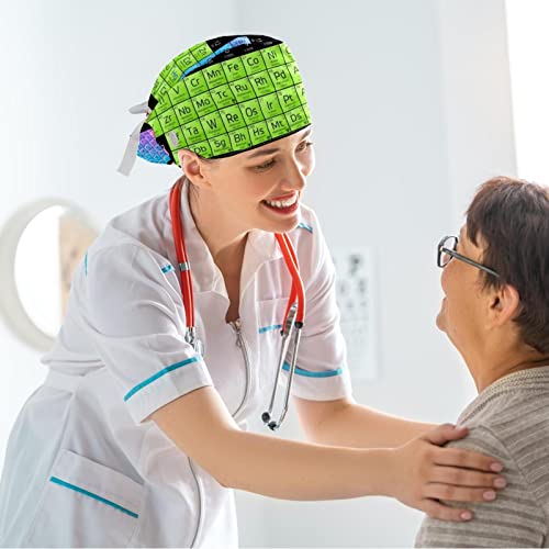 Cappucci Bouffant Scrub Regolabili Cappello da Lavoro Copertura per Capelli con Custodia a Coda di Cavallo Berretto da Infermiera chirurgica Morbido,Elementi di Chimica Tavola Periodica Colore