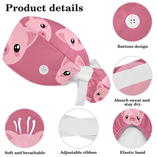 Cappucci Bouffant Scrub Regolabili Cappello da Lavoro Copertura per Capelli con Custodia a Coda di Cavallo Berretto da Infermiera chirurgica Morbido,Maiale Animale Cartone Animato Rosa
